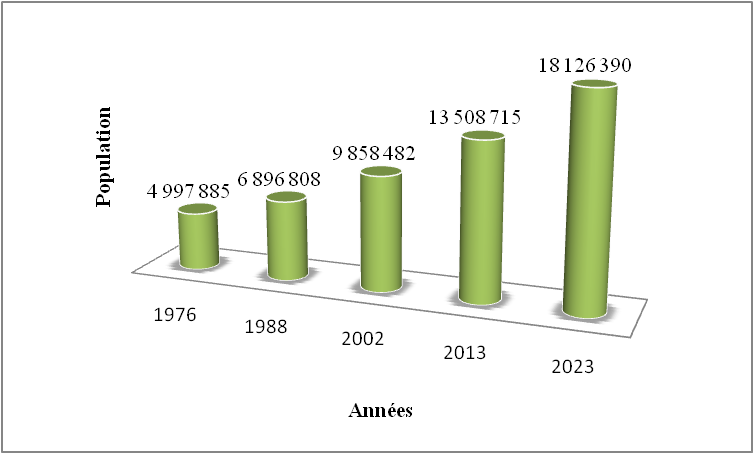 Graphique : évolution de la population sénégalaise entre 1976 et 2023